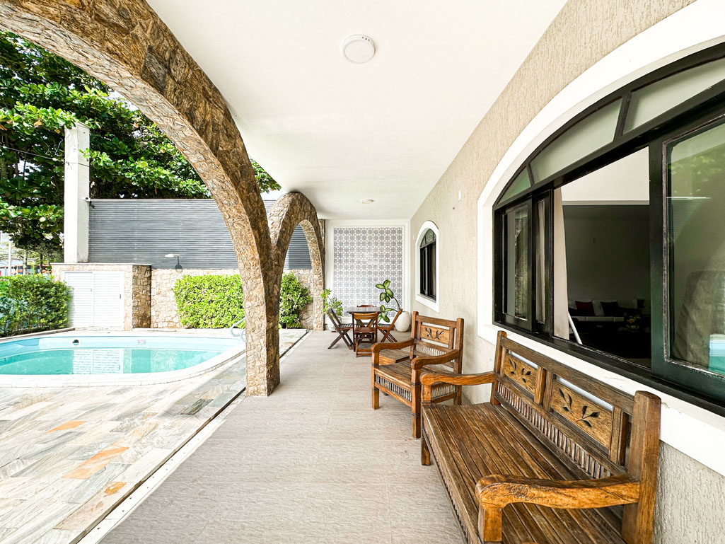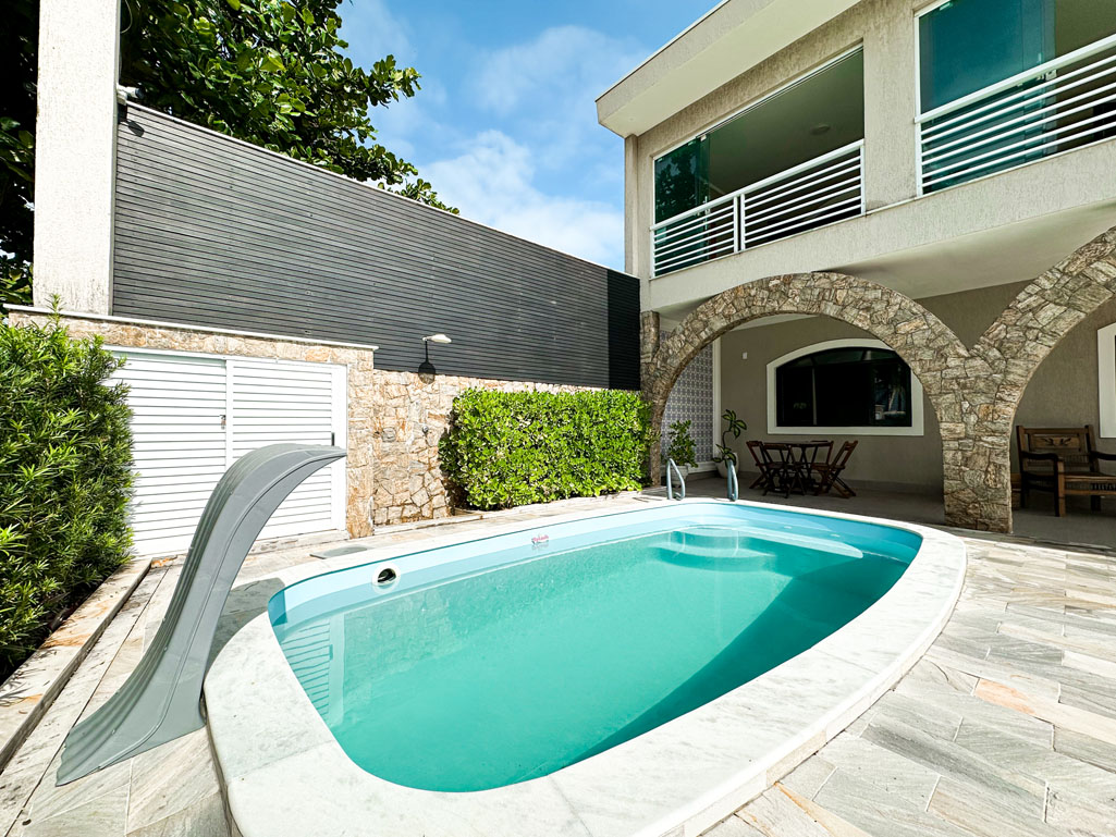 A Casa dos Arcos oferece áreas externas completas para momentos inesquecíveis em família. A piscina é perfeita para se refrescar e aproveitar os dias de sol, enquanto o espaço com churrasqueira convida para reunir todos em refeições descontraídas e cheias de boas lembranças.